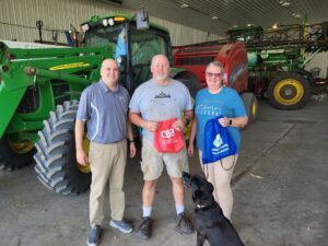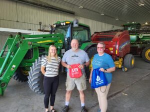 Larry answered his phone correctly on our 3rd try this morning. Sports Director Jon Swisher and Brooke Beatty from CSB delivered Larry and his family lunch from Delhi Landing, along with some goodies from us, the Delaware County Pork Producers and the contest’s exclusive sponsor, Community Savings Bank.