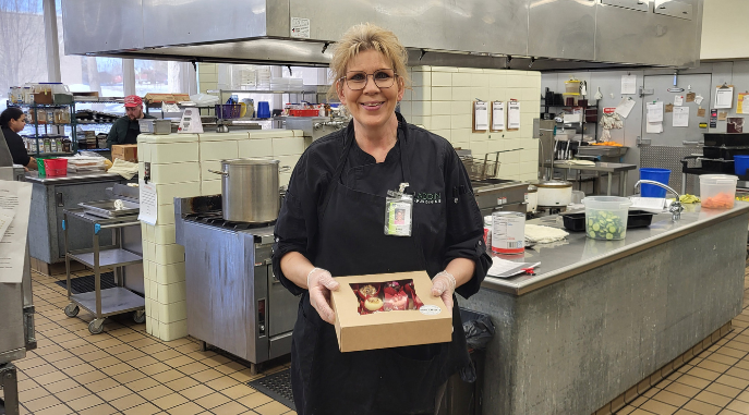 KMCH’s Eric Walker traveled to Epworth and Divine Word College to bring Barb and her co-workers in the cafeteria a dozen delicious Aunt Emmy’s cupcakes simply for listening to KMCH at work.