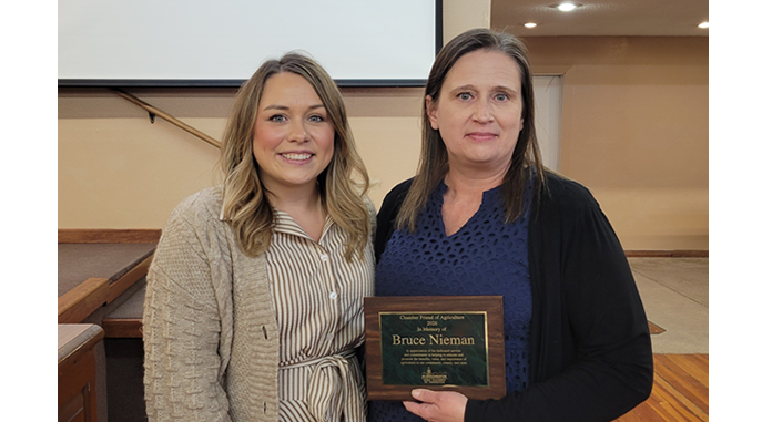 The Manchester Chamber presented their annual Friend of Ag Award at the Ag Appreciation Luncheon on Tuesday, with this year’s award honoring a Delaware County ag supporter who we lost in December.