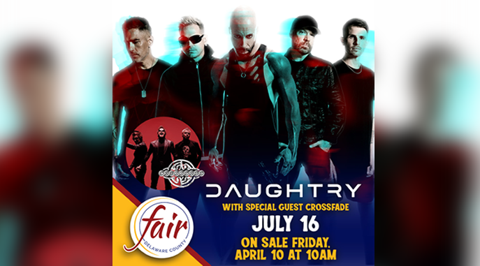 Tickets for Daughtry go on sale Friday at 10 am at delawarecofair.com.